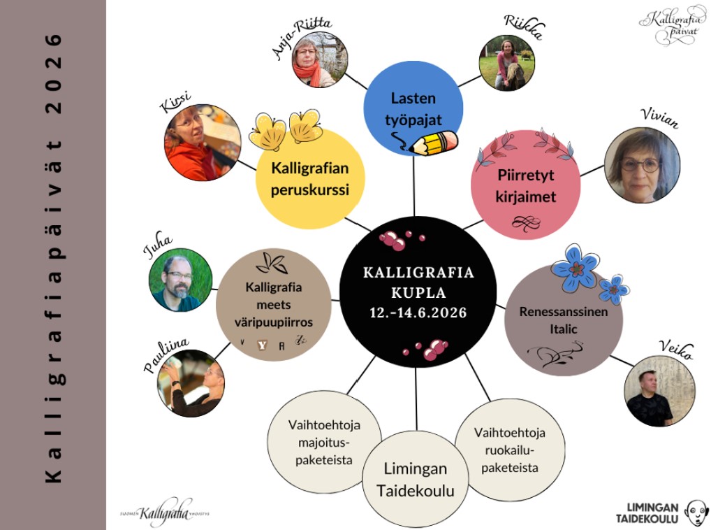 Tänä vuonna “kalligrafiakupla” järjestetään 12.-14.6.2026 Limingan Taidekoululla.